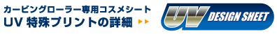 カービングローラーコスメシートは、紫外線硬化型インクを工業用特殊出力機によりプリントする事で鮮やかな発色と耐久性を併せ持つ事に成功しました。